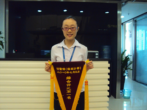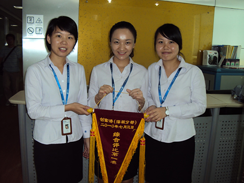 上沙分中心成立于2007年年底,分3层楼,每一层建筑面积约为670平方米。至今将近有4年的运营期,其装修格局虽不再新颖,但上沙分中心的同事却从不缺少热情和激情。今年6月到8月,在上沙中心经理邱丽娜的带领下,上沙3楼、4楼均进入了前三的好成绩,成为深圳地区综合环境评比最大的赢家!而这一切跟上沙的所有成员都是分不开的,她们分别是:中心经理助理石晓翠、2楼行政文员郑悦芬、3楼行政文员熊艳和4楼行政文员邓艳丽。清一色的“娘子军”展现了创富港的一代“港姐”的风采!